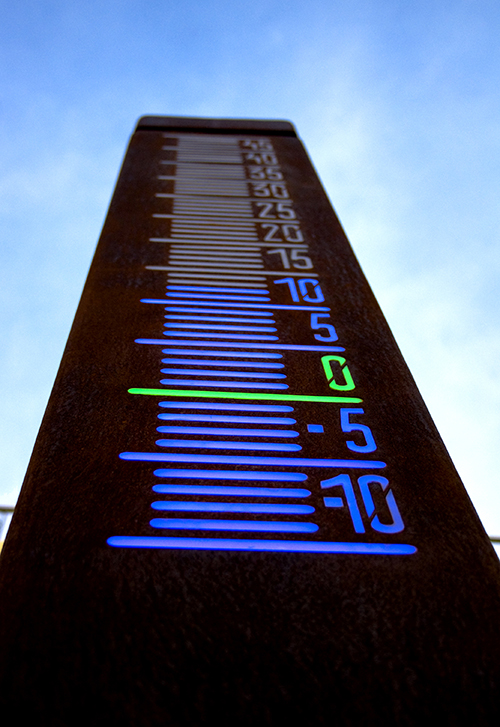 Diseño de termómetro como una pieza más de mobiliario urbano más, premiada como la mejor idea emprendedora de la Universidad de Almería al mejor diseño de equipamiento urbano.