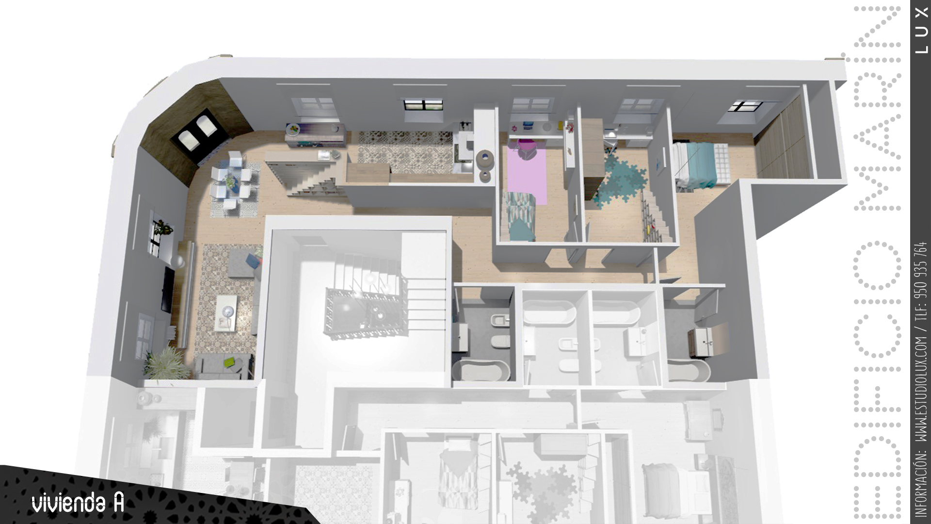 El edificio Marín está compuesto por cuatro viviendas y un local comercial. Disponen todas ellas de tres dormitorios, salon-comedor, dos baños, cocina, plaza de garaje y trastero. La altura de sus techos permiten crear diferentes ambientes a distintas alturas. Ninguna vivienda es igual a la otra gracias a la oportunidad de personalizar las viviendas.