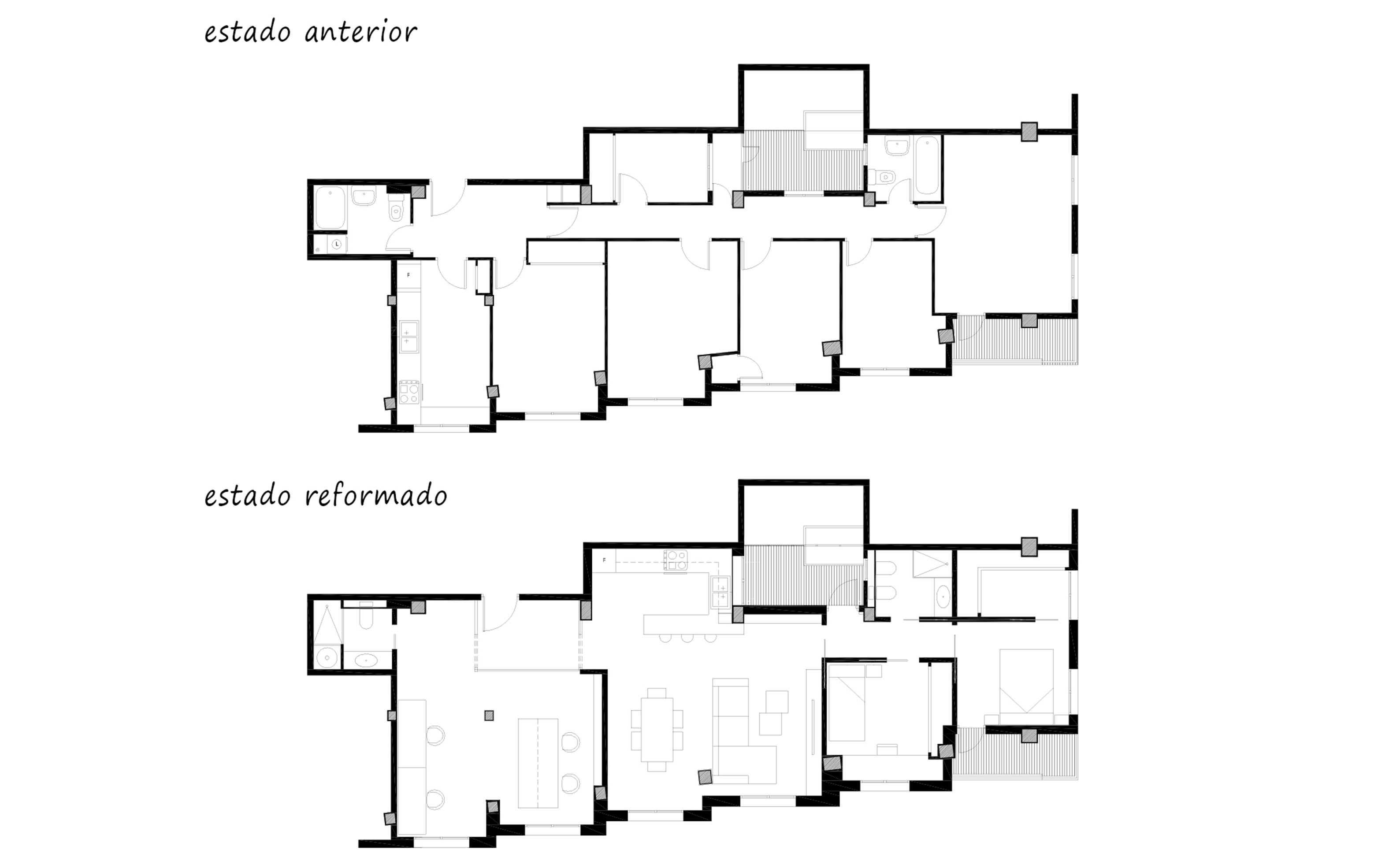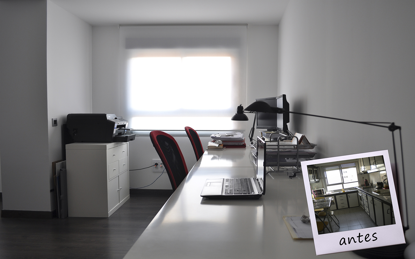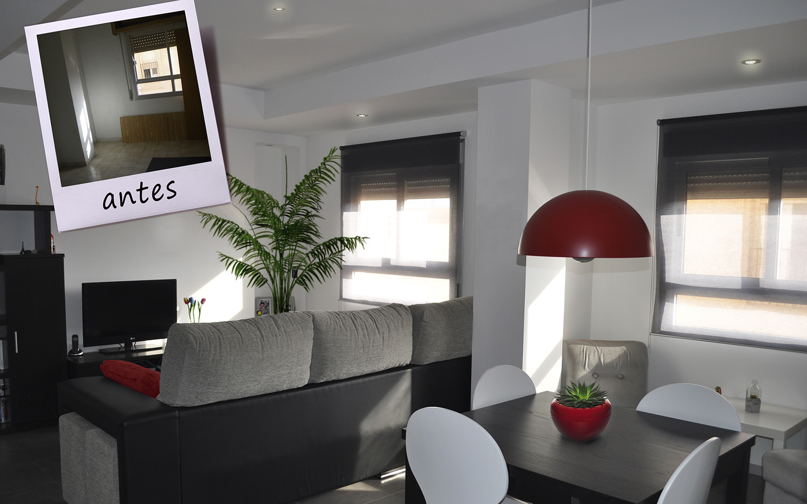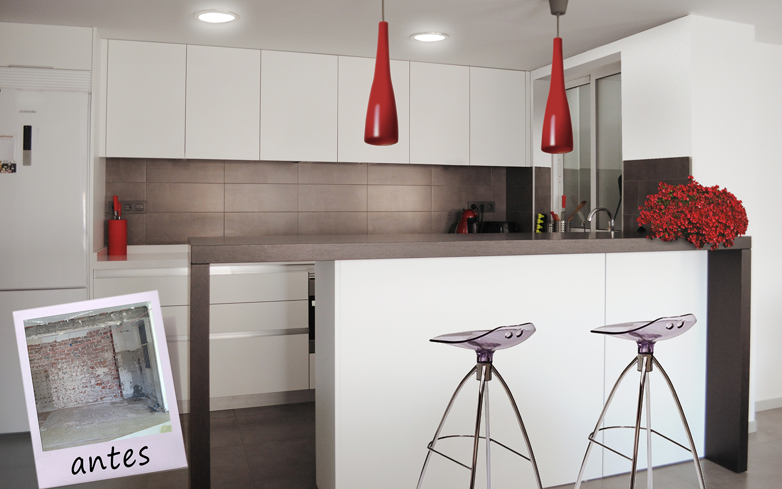 La vivienda elimina tabiquería y gana amplitud y luminosidad en sus espacios. La cocina cambia su localización y se abre al salón aportándole amplitud a ambas estancias. El cliente estuvo totalmente asesorado e informado durante el trascurso de la obra, con la unica preocupación de entrar en la vivienda una vez terminada.