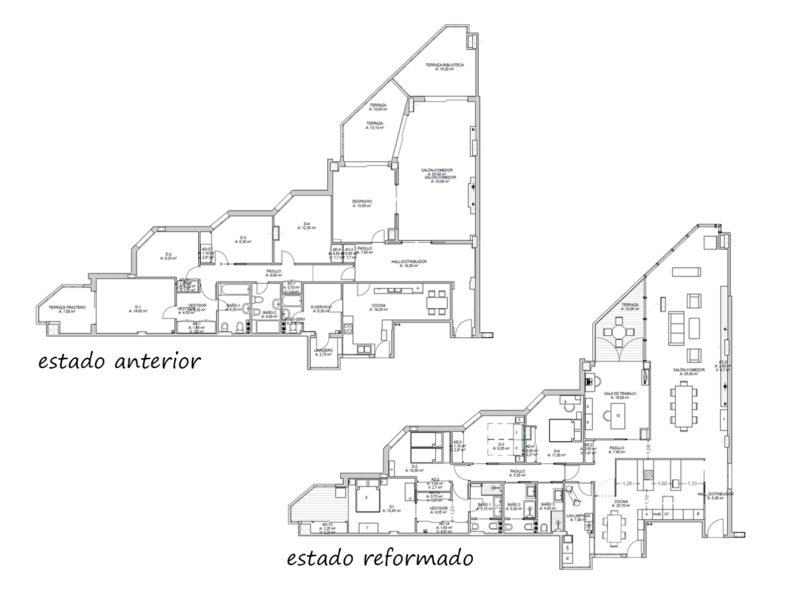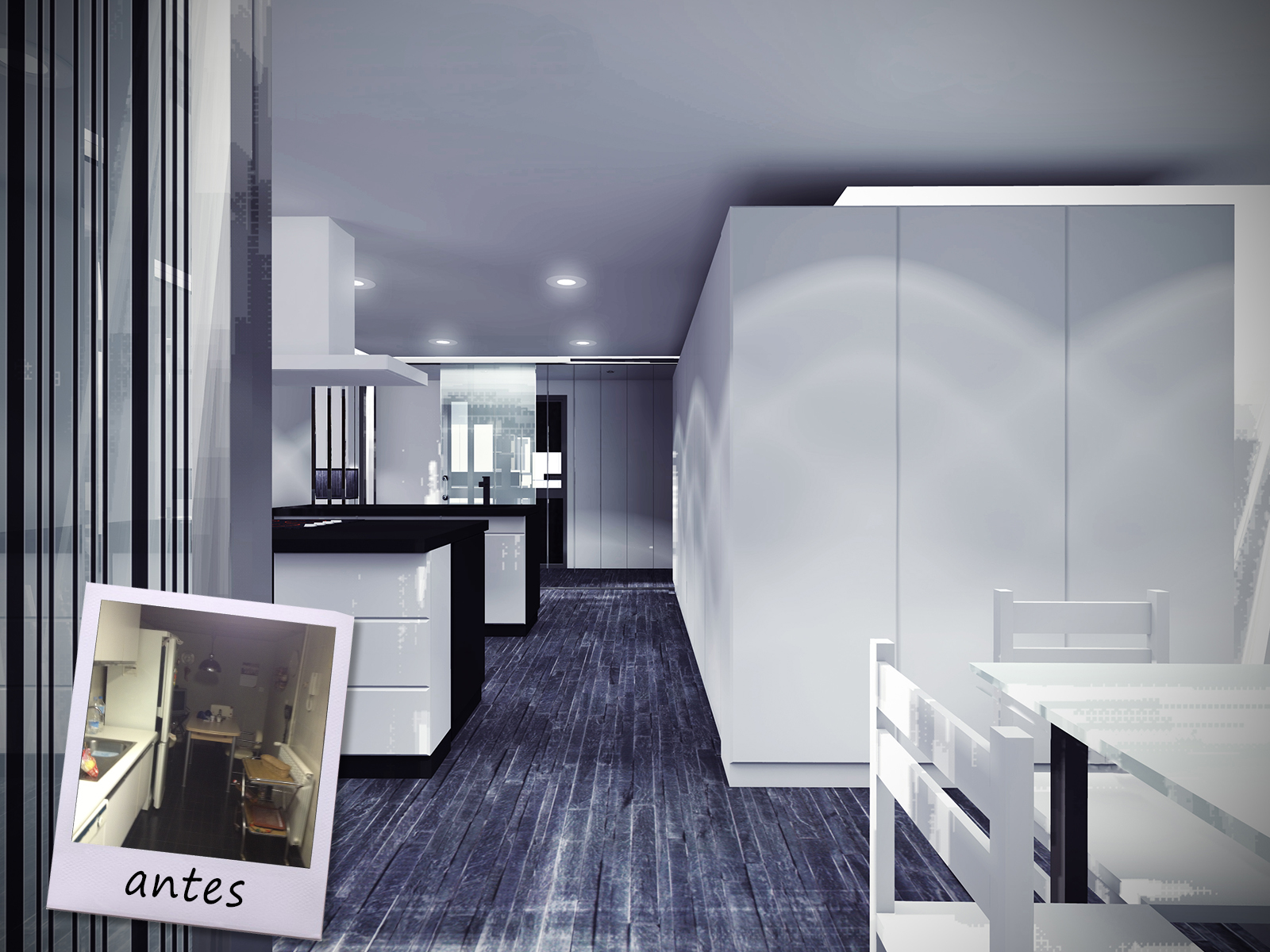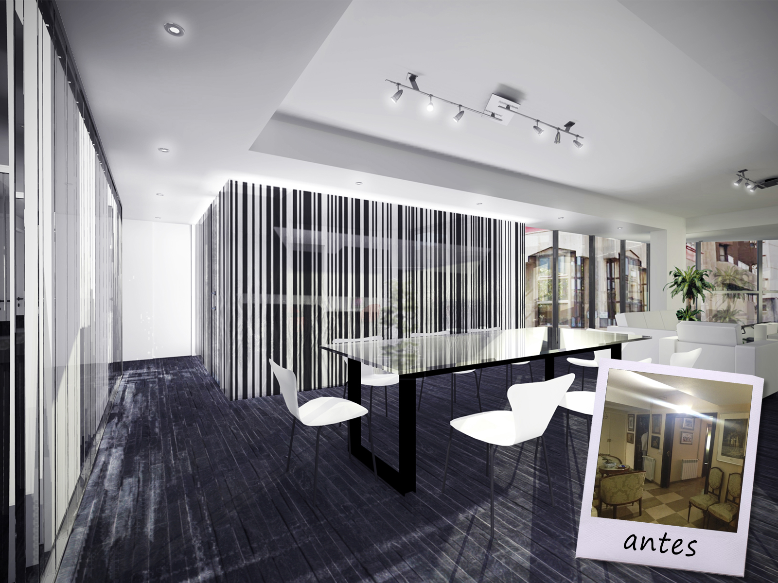 Intervención de reforma total de una vivienda en el Paseo de Almería. El proyecto de reforma contempla la supresión de las estancias de servicio, y la adaptación a uso de personas con movilidad reducida. Se amplia el espacio ganado de la terraza al salón, creando un espacio diáfano abierto a la calle.