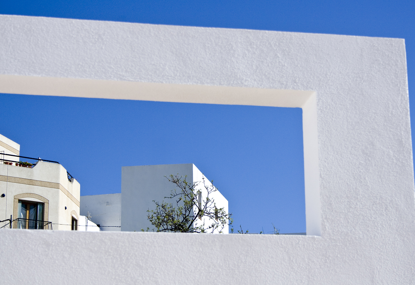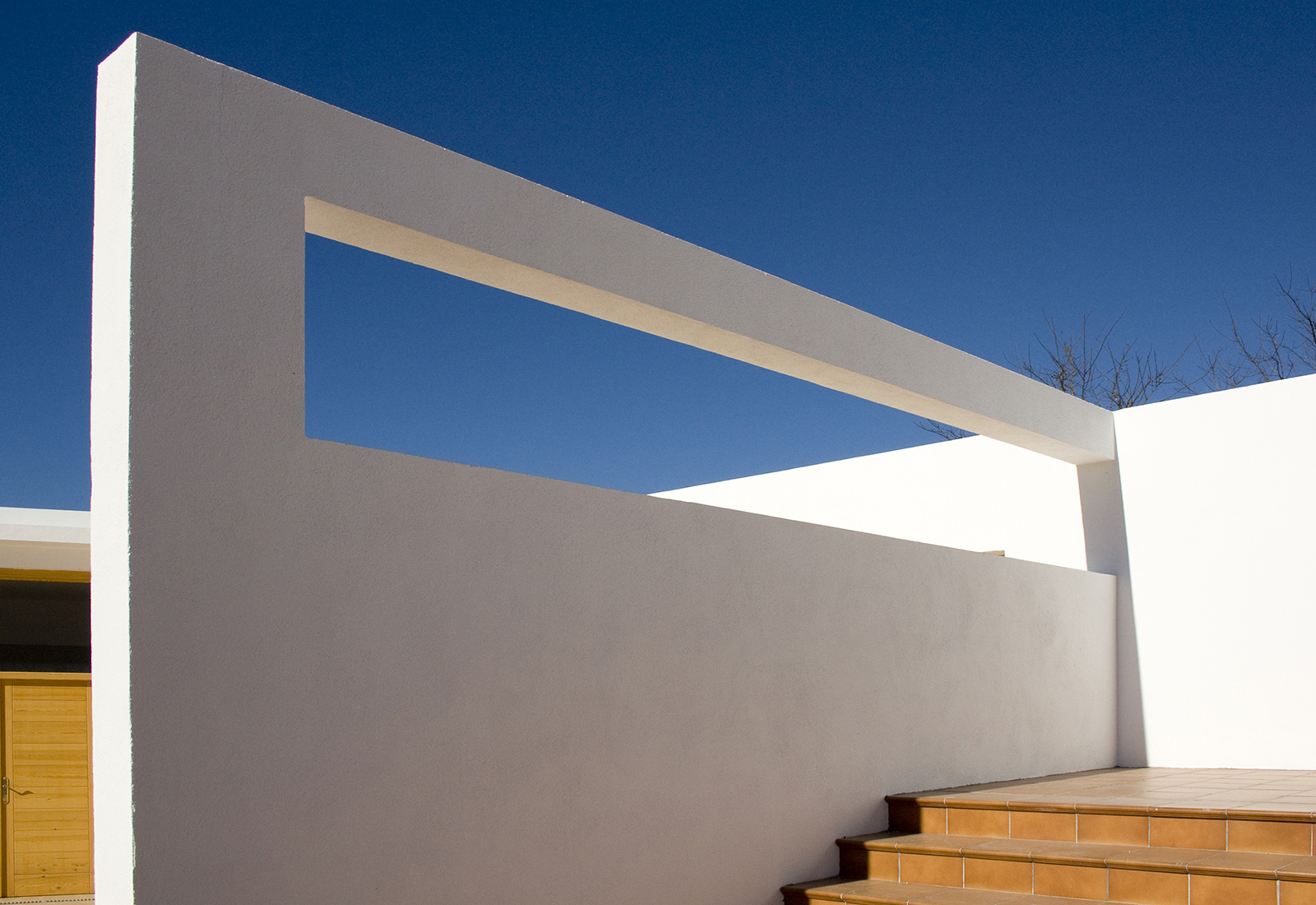 El proyecto realizado contempla la ampliación de la zona de restauración, equipándola de zonas de sombra con amplias vistas al entorno, y la realización de una pergola escultórica semiesferica que recuerda a una proyección esterográfica de recorrido solar. Se realizan nuevos accesos, adapatados a minusválidos y una ventana apantallada que enmarca el paisaje urbano de la población.