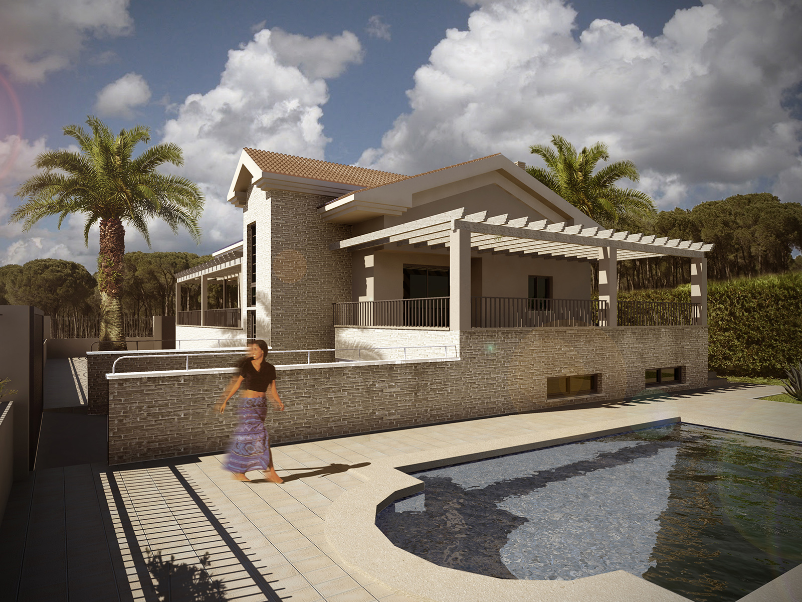 Parcela situada en el bello paraje de Bellavista. El cliente solicita una vivienda de marcado corte clásico, con cubierta a dos aguas y aplacado exterior de piedra del entorno. El interior es un gran espacio a doble altura, auténtico vertebrador de la vivienda.