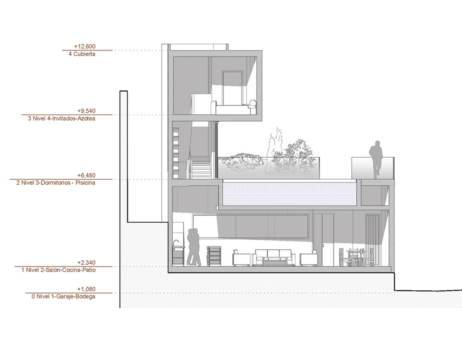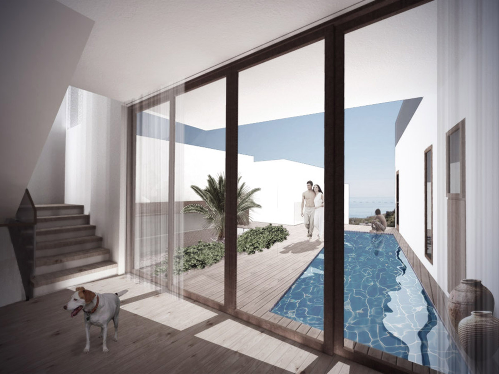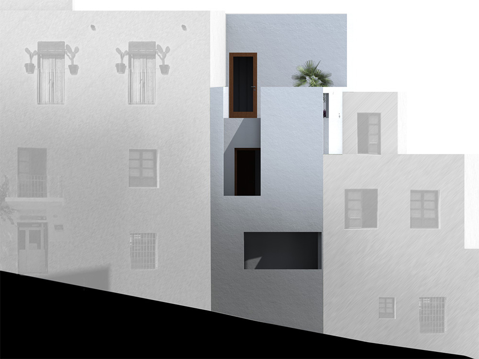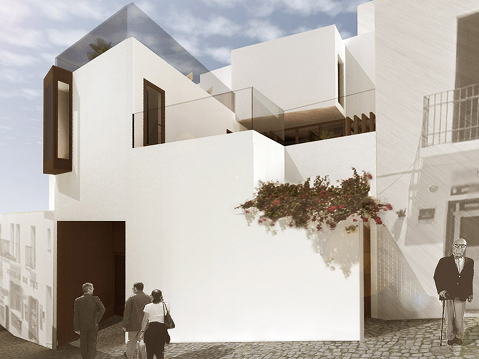 Como una serie de dados colocados sobre la ladera, la apariencia de la casa es de blancos volúmenes con escasos vanos, cerrando en su interior la intimidad de la casa morisca.